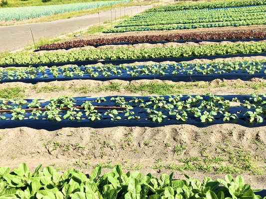 つい1か月前の圃場は、堆肥を撒いたり、トラクターで耕耘して播種や定植の準備がメインでした。