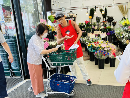終盤の時間、全員で街頭にて野菜🥕🫑をPRしながらの呼びかけに複数のお客様が足を止めて、店内へ。