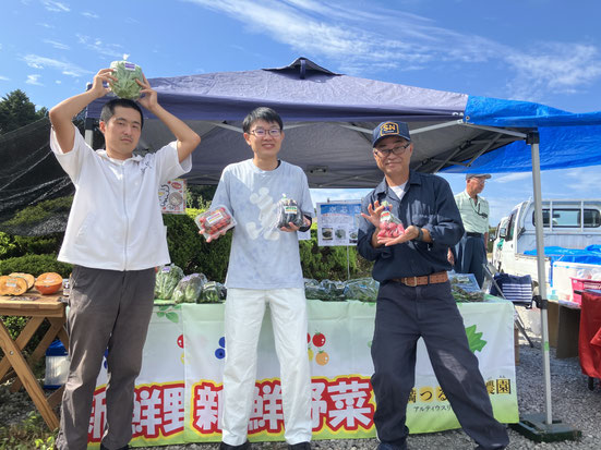 幸満つる 野蒜農園の色とりどりの新鮮野菜を手に取っていただくとともに、「いらっしゃいませ!」「ありがとうございました!」と元気なスタッフがいきいきと働く事業所として知っていただくきっかけになった販売会でした。